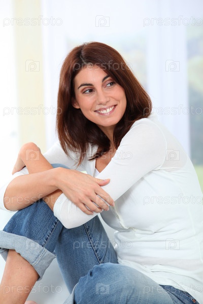 Молодая женщина на диване