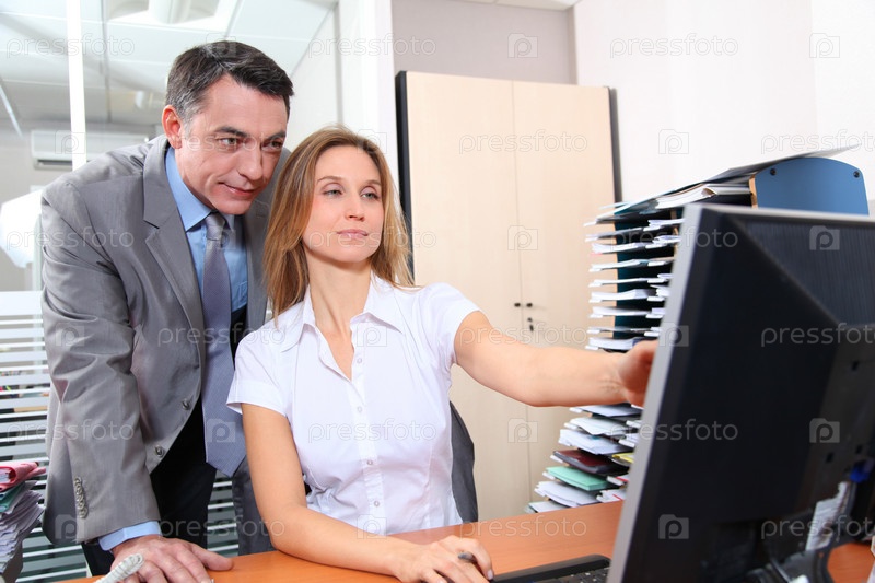 Руководителя и сотрудника перед компьютером в офисе