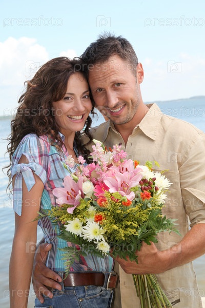 Женщина с букетом цветов