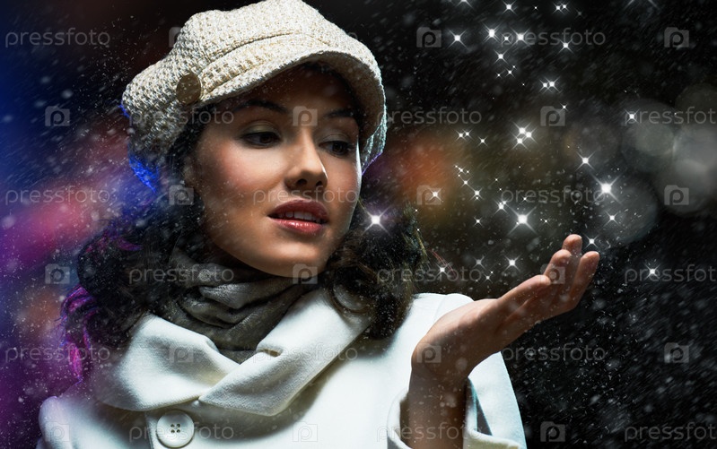 Красивая привлекательная женщина на свежем воздухе зимой