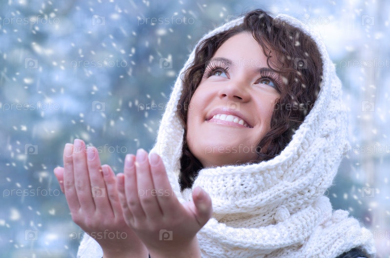 Красивая привлекательная женщина на свежем воздухе зимой