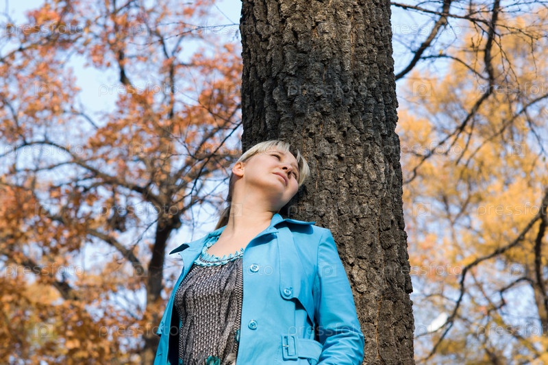 Красивая привлекательная женщина в осеннем лесу