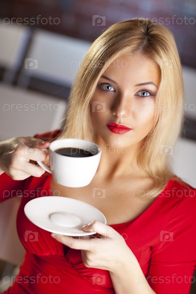 Молодая женщина с кофе в театре