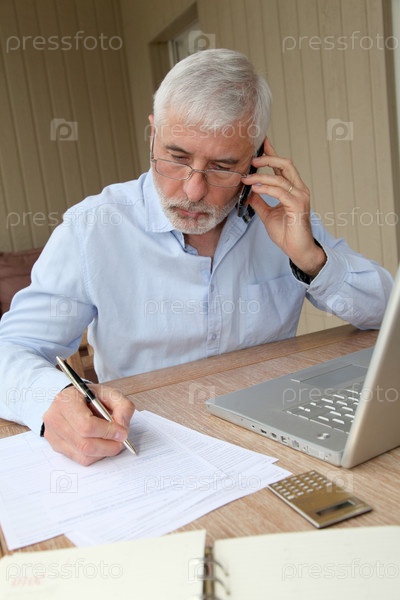 Старший мужчина говорить на мобильном телефоне