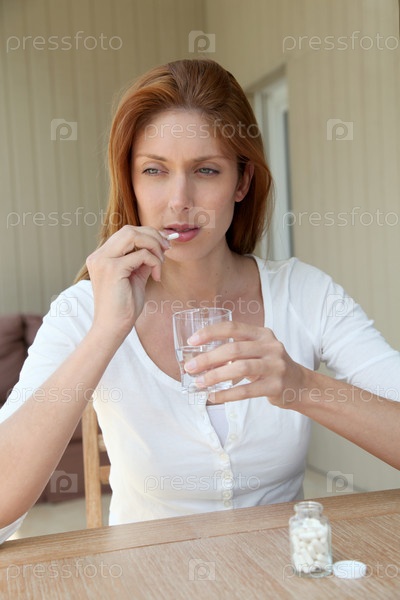 Женщина берет таблетки
