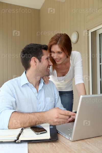 Человек, работая на дому с женой