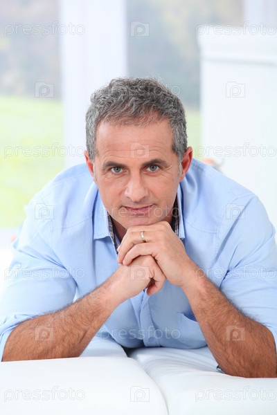 Красивый зрелый человек, лежа на диване