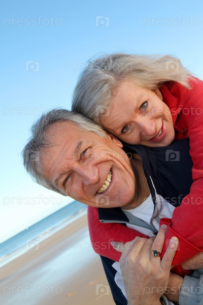 Старший мужчина, давая контрейлерных ездить женщина у моря