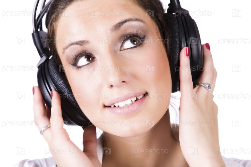 Молодая женщина с большие наушники