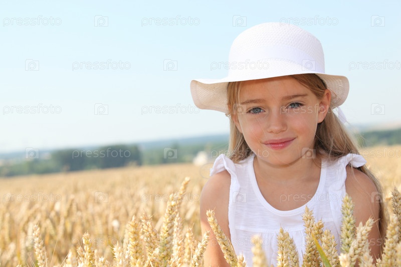 Маленькая девочка в поле пшеницы