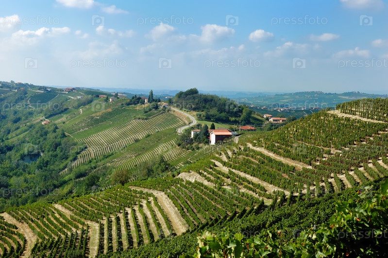 Панорама виноградники, Барбареско холмы, Пьемонте, Италия