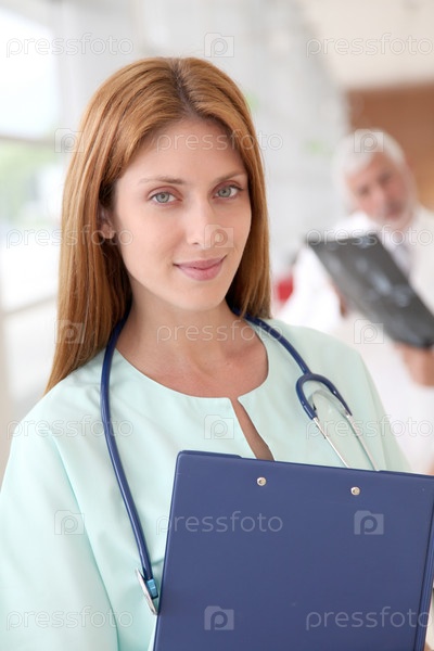 Портрет красивой медсестра в больнице