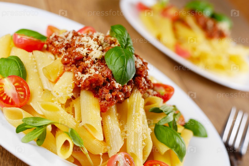 Ригатони макароны с томатным соусом говядина в белые пластины