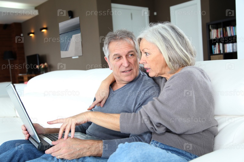 Пожилые супружеские пары, серфинг по Интернету на дому