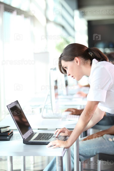 Молодая женщина, работающие в офисе