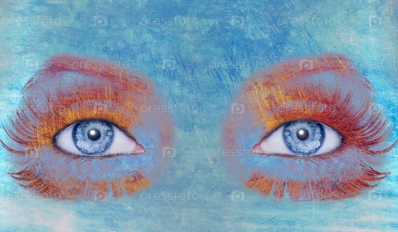 Абстрактные голубые глаза макияж женщина гранж окрашены стены текстуры