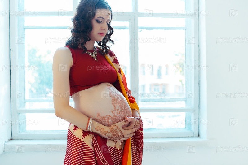 Живот беременной женщины с тату хной