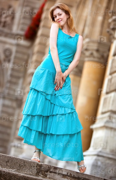 Молодые тонкая женщина в платье