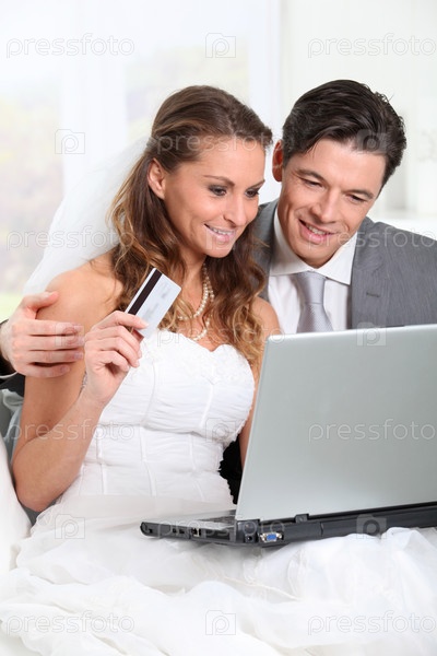 Невеста и жених, делать покупки на Интернет дома