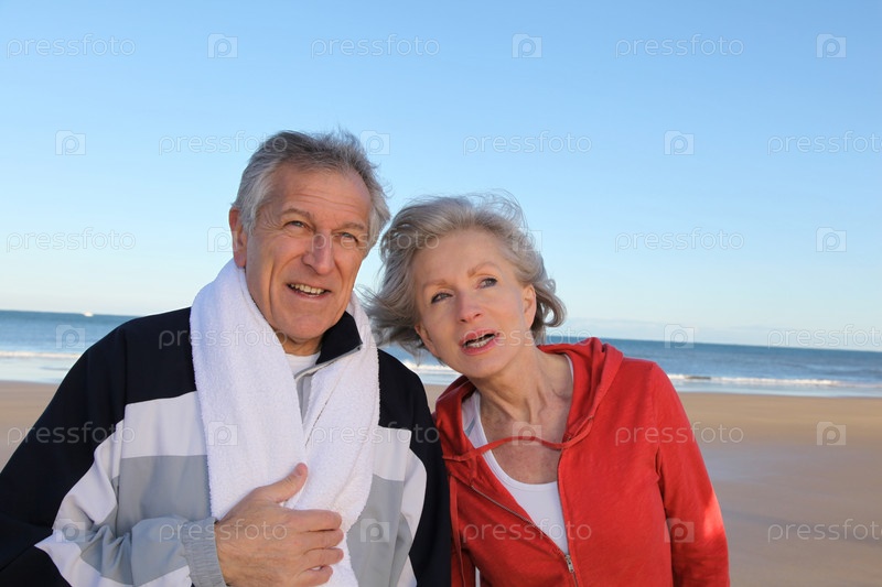 Пожилые супружеские пары, осуществляя на море