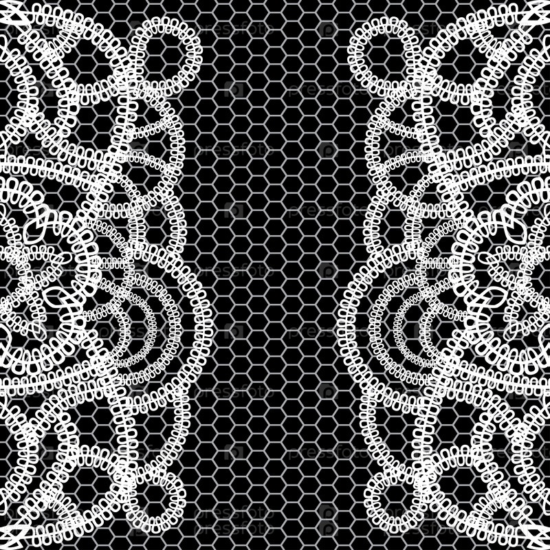 Бесшовный монохромный фон с белыми кружевами на черном фоне