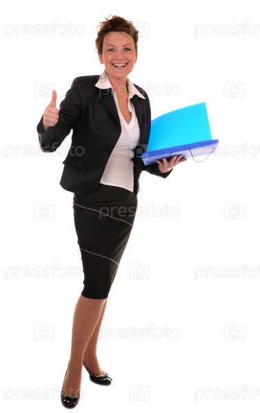 Бизнес-леди с документами на белом фоне