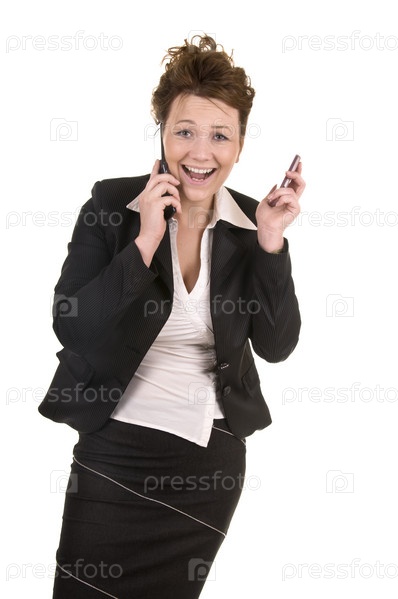 Бизнес-леди с двумя телефонами на белом фоне