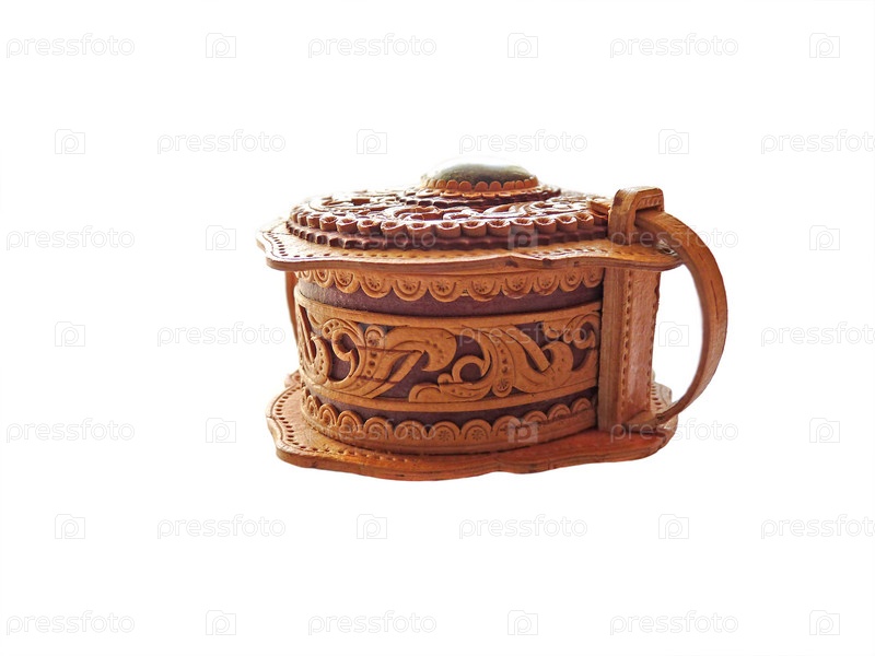 Резная деревянная шкатулка или миска, изолированная на белом фоне