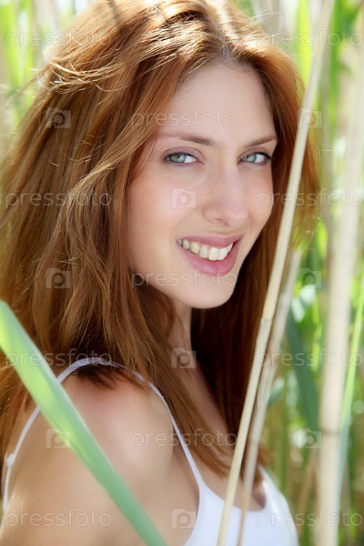 Портрет красивой женщины в камышах поле