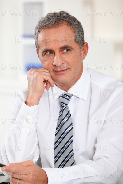 Портрет предпринимателя, сидел на своем столе