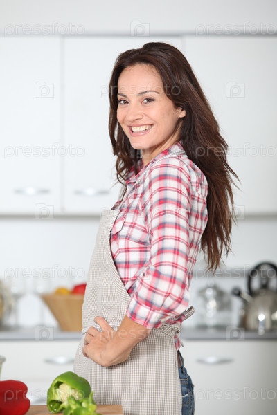 Красивая женщина на кухне с фартуком