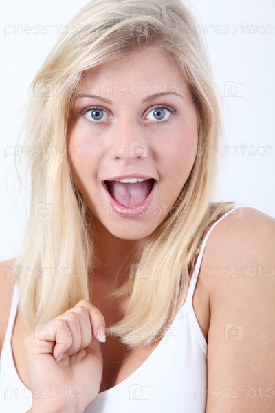 Красивая блондинка на белом фоне
