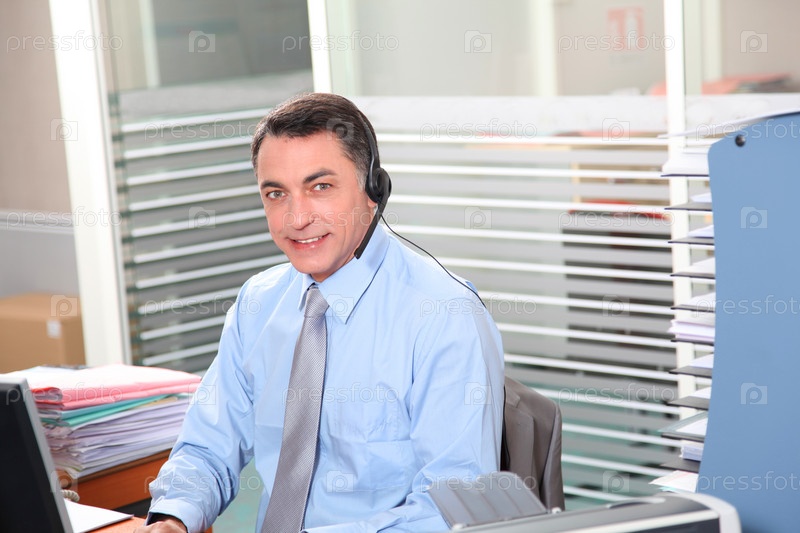 Взрослый человек в офисе, по телефону