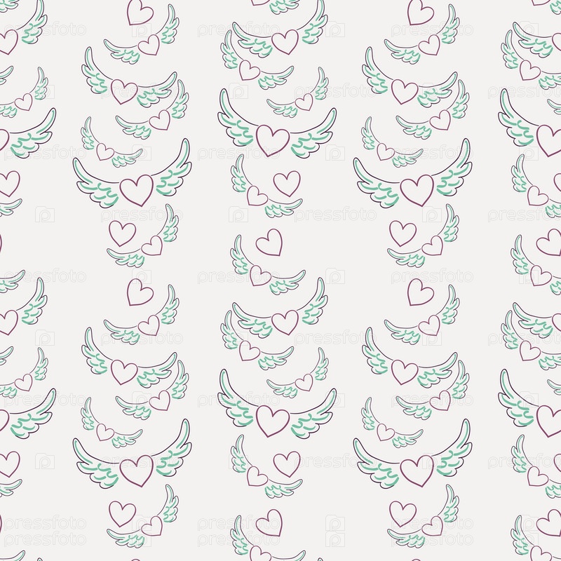 Бесшовный фон крылатого сердца