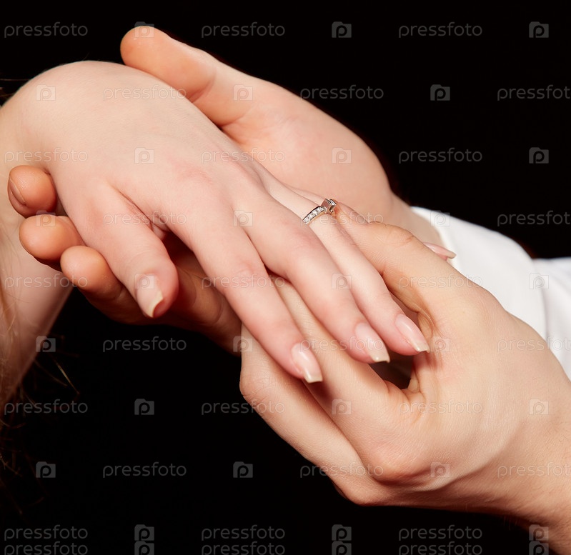 Крупным планом размещения обручальное кольцо в женский палец человека
