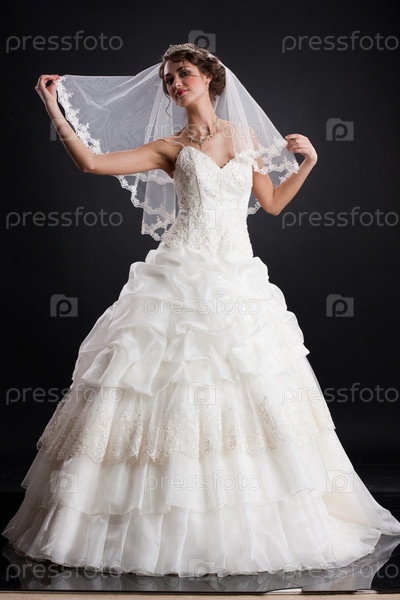 Молодая красивая женщина в модные Свадебные платья на черном фоне