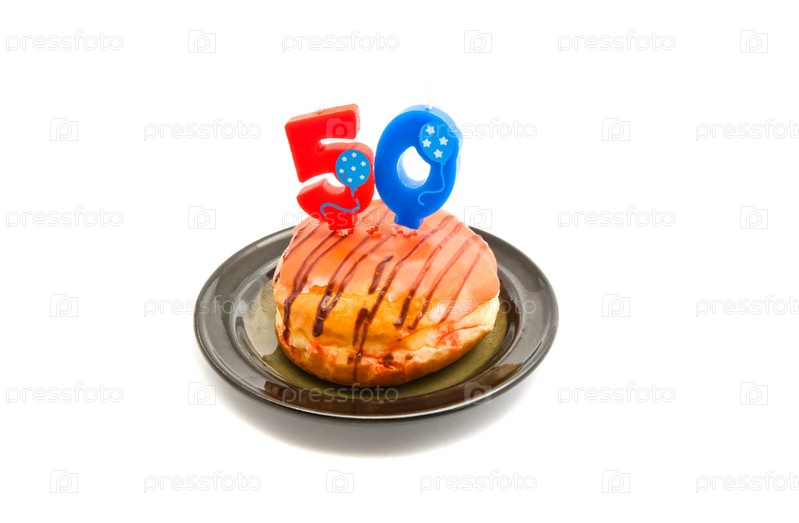 Пончик с пятидесятилетним юбилеем Свеча на белом