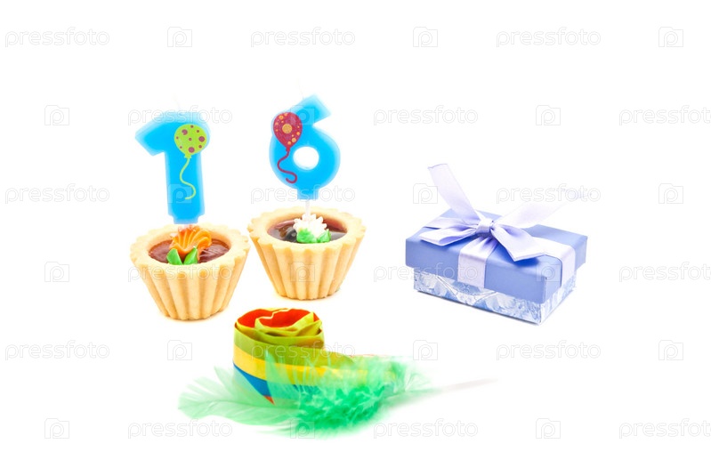 Торты с шестнадцати лет день рождения свечи, свисток и подарок