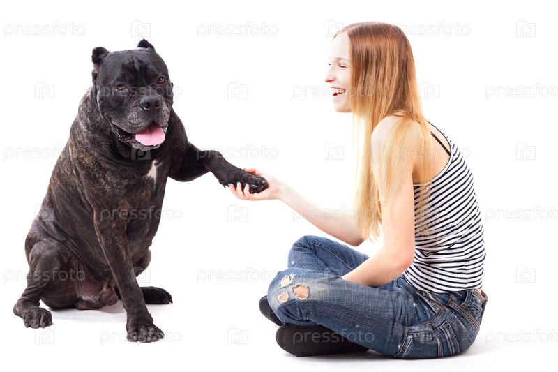 Кане Корсо выполняет команду Дай лапу