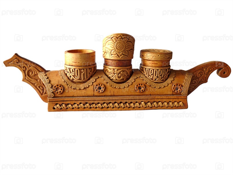 Деревянный резной набор для специй, изолированный на белом фоне