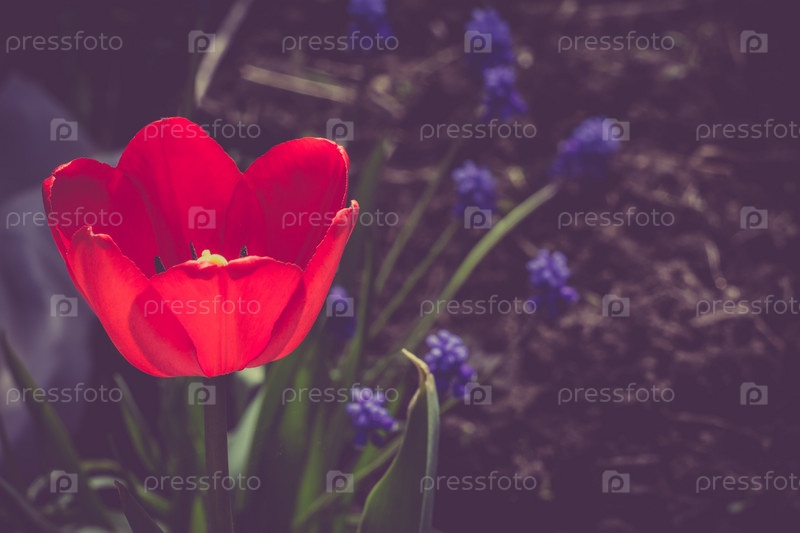 Красный тюльпан в сад ретро