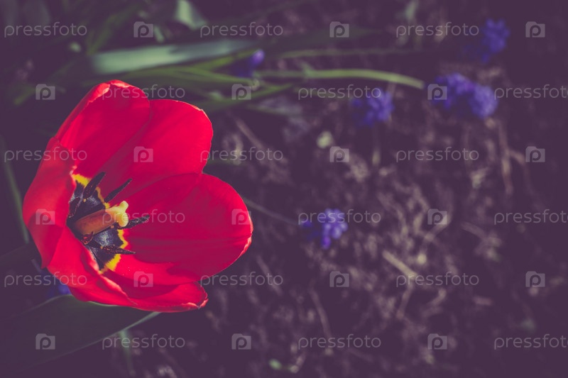 Красный тюльпан в сад ретро