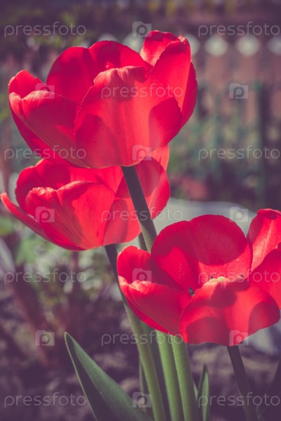 Красный тюльпан в сад ретро