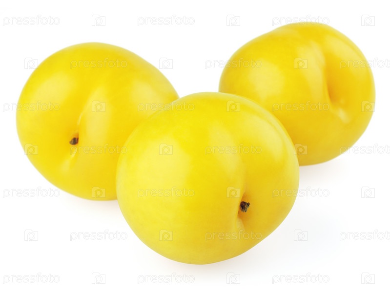 Три желтые сливы на белом фоне