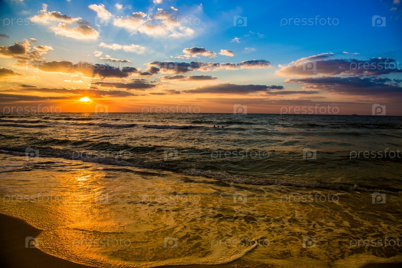 Дубай-море и пляж, красивый закат на пляже