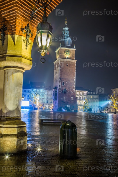 Польша, Краков. Рыночная площадь ночью