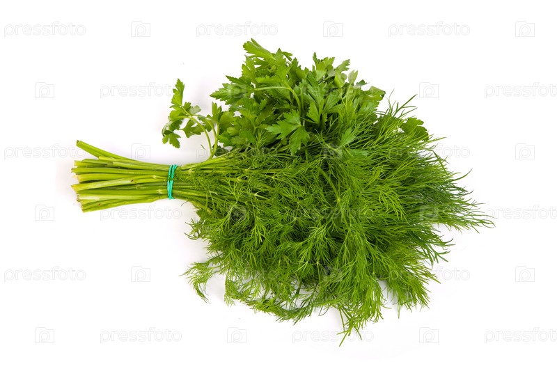 Свежие ветви зеленый укроп и петрушку связали изолированных