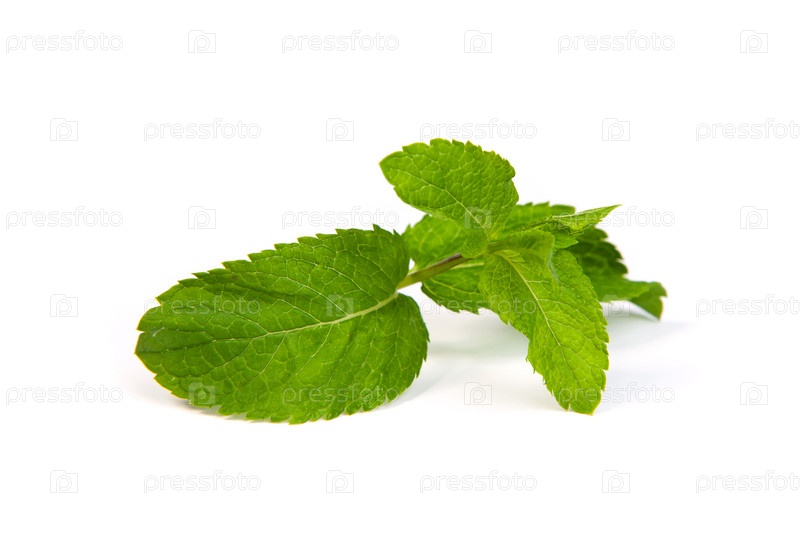 Листья мяты на белом фоне