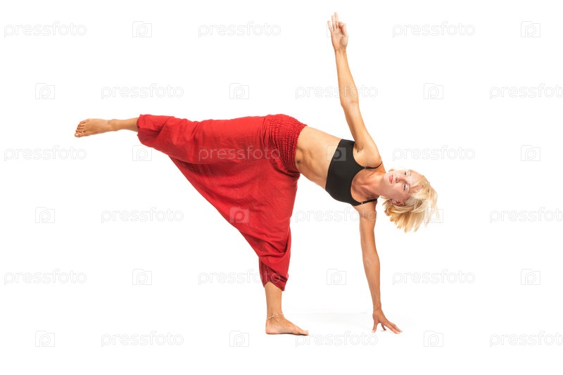 Практика йоги. Молодая женщина, изолированные на белом фоне
