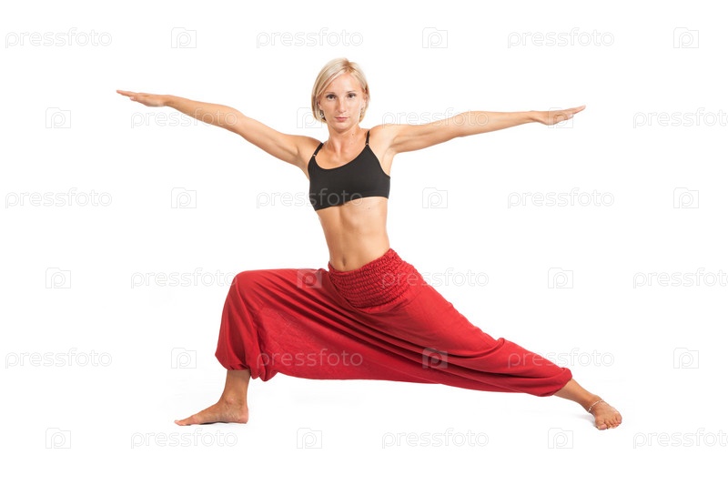 Практика йоги. Молодая женщина, изолированные на белом фоне